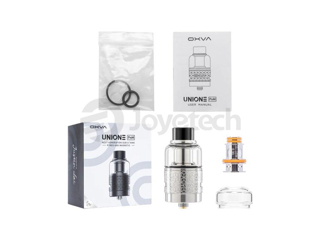 OXVA Unione PnM Tank je inovativní hybridní systém kombinující výhody cartridgí a standardních atomizérů se závitem 510. Za jeho výrobou stojí světoznámý výrobce OXVA. Ve vrchní části zařízení se nachází cartridge s objemem 4 ml, která je kompatibilní například s e-cigaretou OXVA Origin 2 Pod Kit.
