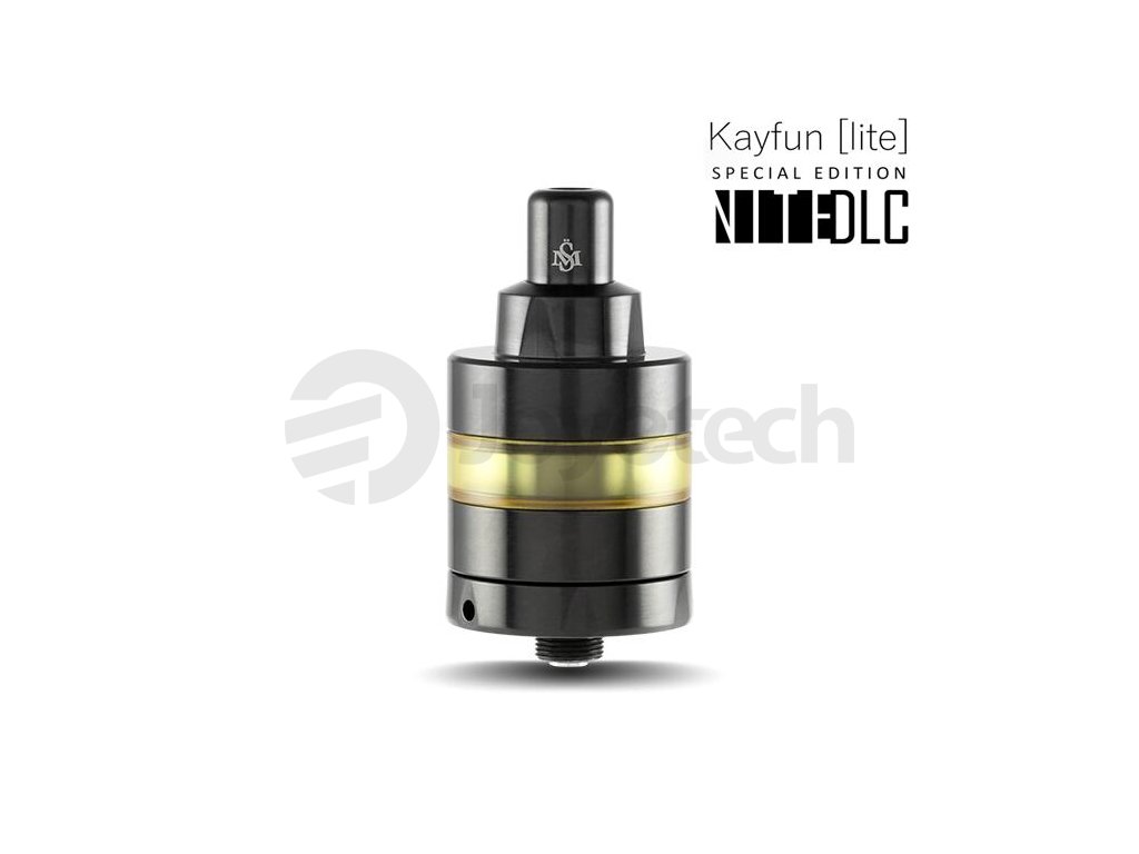 Oblíbený clearomizér Kayfun Lite si budete moci nově pořídit také v luxusní Nite DLC edici. Zkratka DLC se používá pro techniku zpracování povrchu zvanou Diamond-like Carbon. Tato speciální technika si přivlastňuje podobné vlastnosti, jako má diamant, tedy obrovskou pevnost a zvýšenou odolnost vůči poškrábání a dalším vnějším vlivům. Clearomizér Kayfun Lite Nite DLC je vyroben z vysoce kvalitní nerezové oceli a je rovněž plně biokompatibilní, nevyvolává tedy jakékoliv dráždivé reakce v těle. Speciální verze tohoto atomizéru pro klasické šlukování je určena těm nejnáročnějším uživatelům, kteří očekávají nekompromisní kvalitu.
