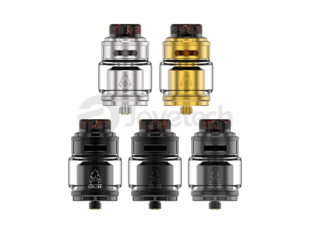 Základní objem tanku činí 2 ml, tuto kapacitu si však budete moci pohodlně navýšit až na 5,5 ml osazením většího pyrexového těla z balení. Mimo obrovskou kapacitu disponuje atomizér také oblíbeným systémem vrchního doplňování. V těle se potom nachází inovativní "WOW" základna pro instalaci dvou spirálek souběžně. Tato základna zároveň nabídne unikátní systém přívodu vzduchu s názvem 270° Honeycomb. Vzduch je přiváděn řadou menších otvorů pod spirálky, odkud poté proudí směrem nahoru do komory. Výsledná chuť je doslova ohromující. Samotnou tuhost potahu si poté můžete ještě regulovat pomocí vrchního systému airflow. THC Blaze RTA je ve všech směrech promyšlený DL atomizér, se kterým se nebudete ani na vteřinu nudit. Zaručeně splní požadavky i těch nejnáročnějších příznivců přímého potahování do plic.