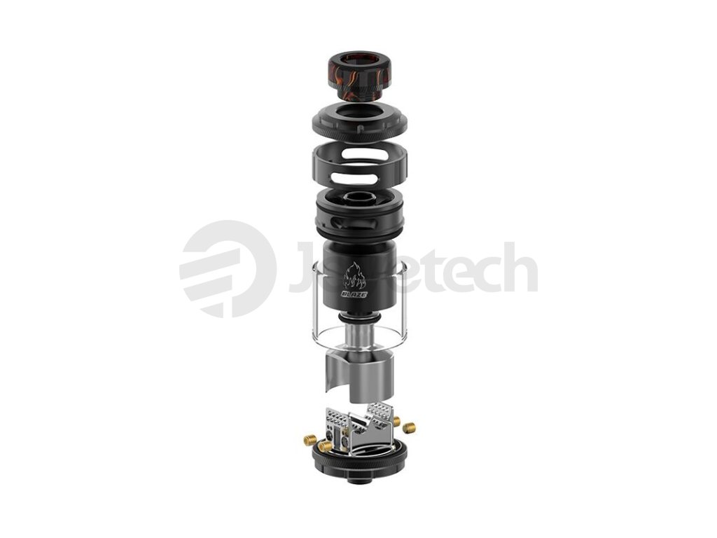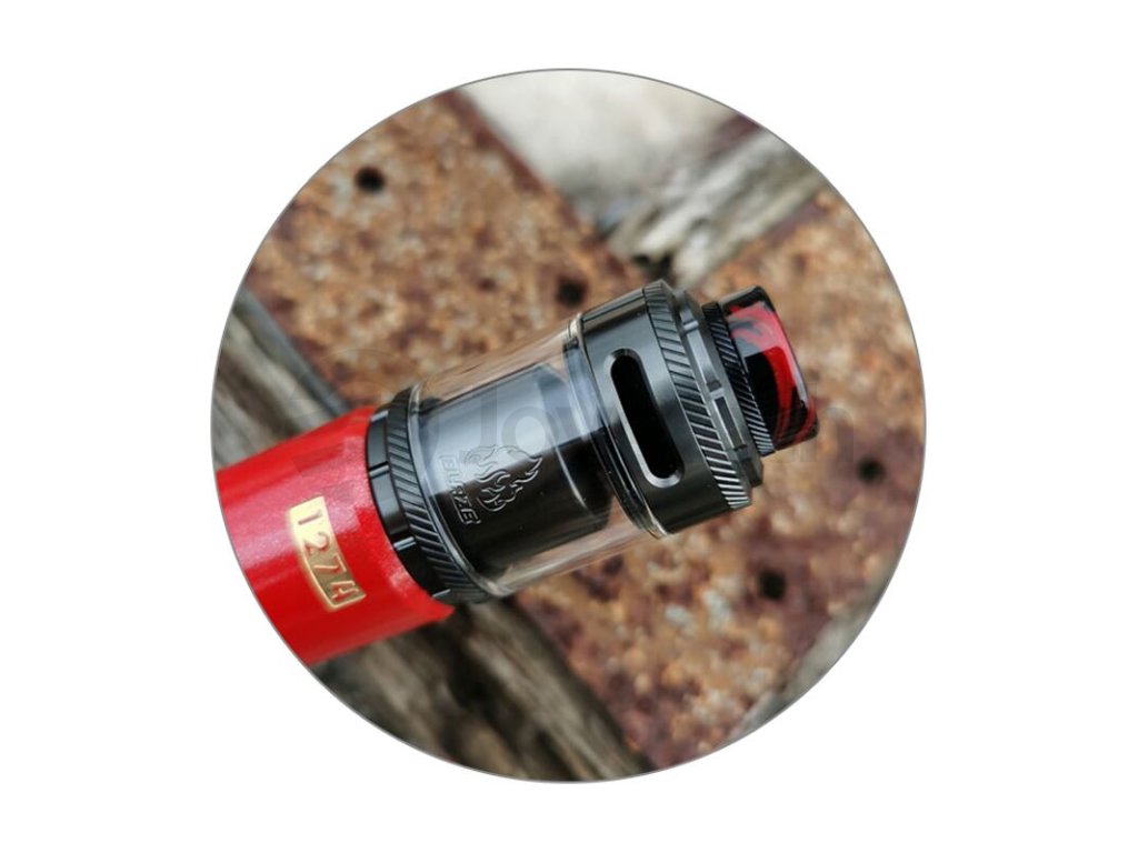 Základní objem tanku činí 2 ml, tuto kapacitu si však budete moci pohodlně navýšit až na 5,5 ml osazením většího pyrexového těla z balení. Mimo obrovskou kapacitu disponuje atomizér také oblíbeným systémem vrchního doplňování. V těle se potom nachází inovativní "WOW" základna pro instalaci dvou spirálek souběžně. Tato základna zároveň nabídne unikátní systém přívodu vzduchu s názvem 270° Honeycomb. Vzduch je přiváděn řadou menších otvorů pod spirálky, odkud poté proudí směrem nahoru do komory. Výsledná chuť je doslova ohromující. Samotnou tuhost potahu si poté můžete ještě regulovat pomocí vrchního systému airflow. THC Blaze RTA je ve všech směrech promyšlený DL atomizér, se kterým se nebudete ani na vteřinu nudit. Zaručeně splní požadavky i těch nejnáročnějších příznivců přímého potahování do plic.