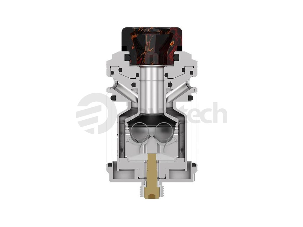 Poté, co vzduch vstoupí do atomizéru skrz vrchní airflow systém, proudí směrem k základně. Do základny je přiváděn ze spodní části, odkud také ofukuje samotné spirálky. Revoluční systém 270° Honeycomb, kterým je opatřena samotná základna, je skutečně dechberoucí. Atomizér si naprosto hravě poradí s kterýmkoliv e-liquidem. Ať už preferujete jednosložkové náplně, nebo složité a komplexní ovocné a dezertové směsi, všechny chutě vykreslí naprosto dokonale.