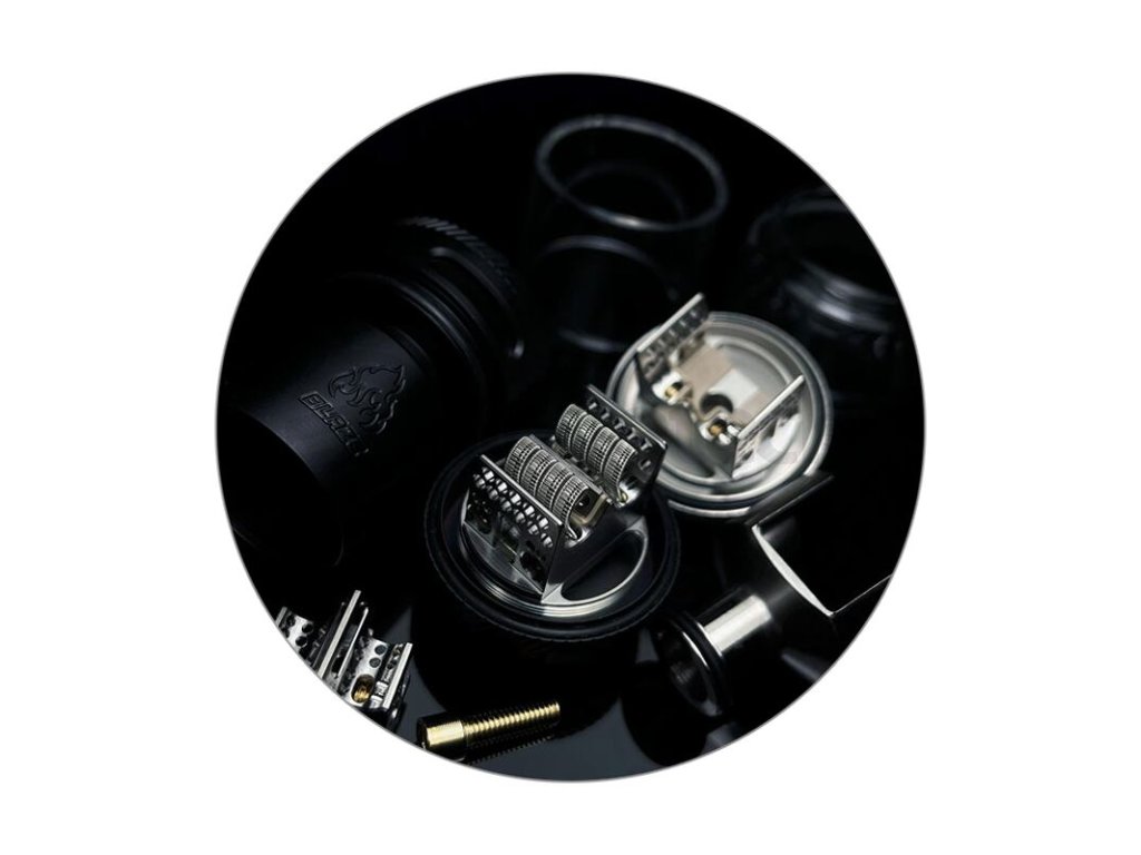 Hlavní předností atomizéru THC Blaze RTA je inovativní "WOW" základna, která umožňuje pohodlné a rychlé osazení dvěma spirálkami dle vlastního výběru. Základna nabídne dostatek prostoru také pro větší spirálky a disponuje potřebným místem pro jednoduchou montáž. S instalací si budou rozumět naprosto všichni příznivci DIY vapingu. Díky specifické konstrukci základny se můžete také těšit na prvotřídní podání chuti.