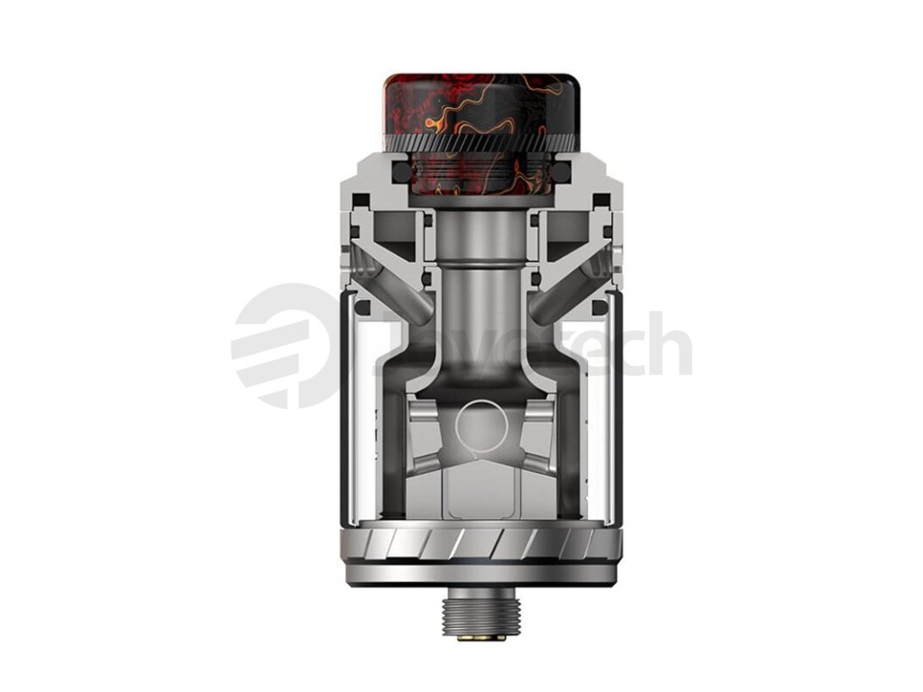 V jádru se potom nachází bezsloupková základna pro instalaci jedné spirálky s postranními děrovanými panely pro efektivní přívod vzduchu přímo ke spirálce. Díky těmto otvorům je spirálka ofukována ve velice krátké dráze, díky čemuž vykouzlíte z atomizéru maximálně plnou a výraznou chuť. Systém regulace přívodu vzduchu je umístěn ve vrchní části, je plně regulovatelný a nabídne široké možnosti nastavení tuhosti potahování. Do detailu vypiplaný atomizér ocení hlavně milovníci vzdušnějších forem potahu, hodí se zejména na středně tuhý DL vaping. Nabídne jednoduchou a přívětivou uživatelskou obsluhu, krásné zpracování a efektivní konstrukční vlastnosti pro zisk chutné a husté páry.