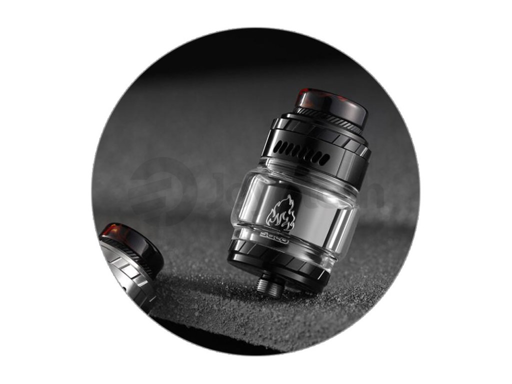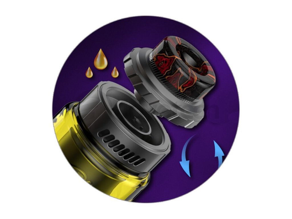 Základní objem atomizéru činí 3,5 ml s použitím běžného rovného skla. V balení se však nachází také větší bubble sklo, po jehož instalaci rozšíříte objem až na 5,5 ml. Tank nabídne v obou případech velkou kapacitu pro dlouhé hodiny nerušeného potahování bez nutnosti doplňování. Pokud na plnění přeci jen dojde, potěší vás přítomnost bajonetového systému plnění, který se nachází ve vrchní části atomizéru. Doplněno máte během pár vteřin.