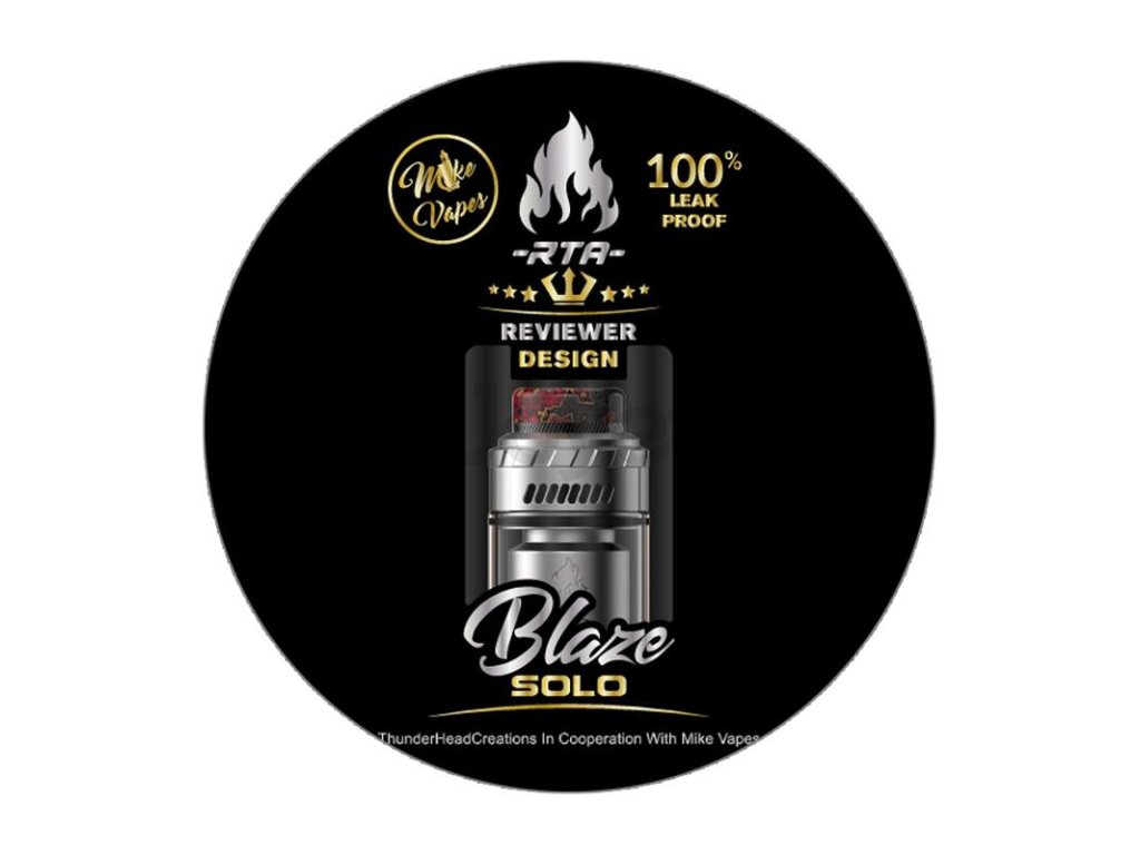 Světoznámý výrobce DIY zařízení pro vaping opět spojil síly s recenzentem Mike Vapes a uvádí na trh sólovou variantu populárního motacího atomizéru Blaze. Model THC Blaze Solo RTA nabídne obrovský objem tanku, praktickou bezsloupkovou základnu, horní systém regulace airflow a přímý ofuk instalované spirálky díky speciálnímu systému cirkulace vzduchu. Kovové tělo atomizéru nabídne také sympatické rozměry a širokou kompatibilitu díky závitu typu 510 ve spodní části. Celkový objem clearomizéru s použitím standardního skla činí 3,5 ml. Tuto kapacitu je možné rychlým krokem navýšit až na 5,5 ml. Postačí jen tělo osadit pyrexovým bubble sklem. Pro snadné plnění je k dispozici bajonetový systém horního doplňování. Celý proces naplnění tak zvládnete během pár vteřin.