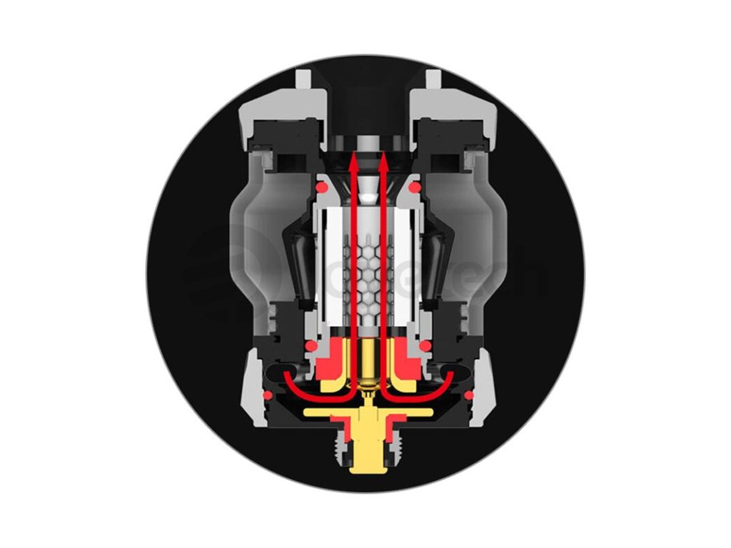 Samotný tank atomizéru je vyroben z kvalitního pyrexového skla s objemem až 5 ml. Doplníte tak do něj potřebné množství e-liquidu pro dlouhé hodiny intenzivního vapování a intenzivní tvorby mraků. Díky větší kapacitě si budete moci vzít atomizér také kamkoliv s sebou a nebudete se muset obávat o to, že by vám e-liquid v tanku jednoduše došel.
