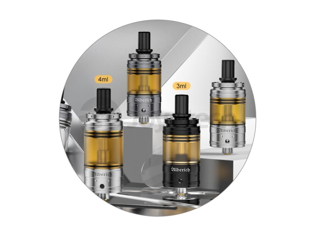 Základní objem tanku u atomizéru Alberich MTL RTA činí 3 ml. I přes tuto větší kapacitu si však budete moci objem pohodlně navýšit. V základním balení na vás čeká sada pro rozšíření objemu, ten je možné navýšit až na 4 ml. S touto kapacitou se nemusíte obávat ani častého cestování, nebo vapování venku. I kdyby po pár hodinách e-liquid v tanku došel, jednoduše odšroubujete vrchní uzávěr a během pár vteřin ho doplníte zpět.