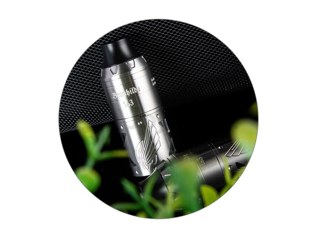 Spolupráce mezi výrobcem Vapefly a německou vaperskou skupinou German 103 Team doslova vzkvétá. Všechna zařízení z této spolupráce se vyznačují nejen perfektní funkčností, ale zejména kvalitně zpracovanými konstrukcemi. Nejinak tomu je i v případě Brunhilde 1o3 RTA. Clearomizér nabídne unikátní zpracování a kvalitní konstrukci z nerezové oceli, kterou dokresluje tank z borosilikátového skla. Na každém modu se bude tento atomizér doslova vyjímat.