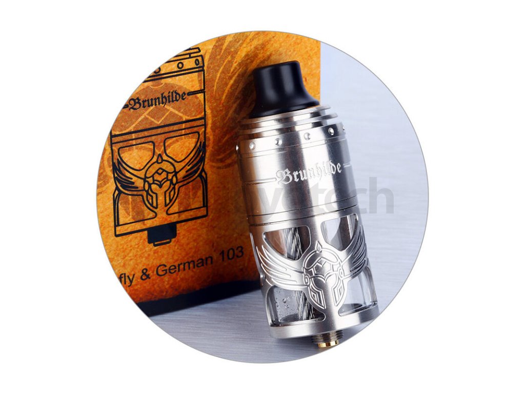 Chybí vám na trhu MTL atomizér s obrovskou kapacitou tanku? Špičkový atomizér Vapefly Brunhilde se po uvedení své DL verze představuje také ve verzi MTL pro všechny milovníky klasického šlukování. Stejně jako verze pro přímé potahování do plic, je i tento atomizér navržen německou vaperskou skupinou známou pod názvem Germany 103 Team. O výrobu atomizéru se potom postaral právě proslulý výrobce Vapefly. Atomizér na první pohled zaujme zejména moderním dílenským zpracováním a luxusními materiály. Tělo je vyrobeno z kvalitní nerezové oceli a působí robustním a bytelným dojmem. Obrovskou výhodou jsou potom také rozměry. Délka atomizéru s náustkem činí 59,5 mm a průměr se zastavil na 23 mm. Díky tomu si bude skvěle rozumět s drtivou většinou modů na dnešním trhu. Ve spodní části se potom nachází závit typu 510 s pozlaceným a regulovatelným centrpinem, díky čemuž je atomizér vhodný také na hybridní mechanické mody.