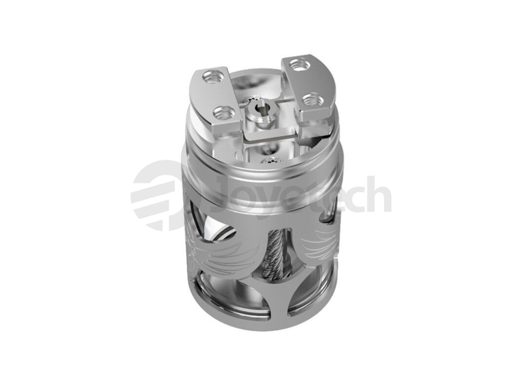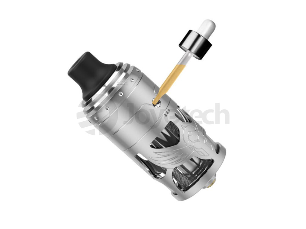 S velice specifickým rozložením a designem se potom setkáte ve vnitřní části atomizéru. Jedná se o tzv. top coiler, jehož základna je umístěna ve vrchní části atomizéru nad samotným tankem na e-liquid. Do této základny je možné instalovat celkem jednu spirálku dle vlastního výběru. Základnu tvoří dva sloupky a výsledná instalace a uchycení jsou nesmírně jednoduché. Hravě si s ní poradí také začátečníci v oblasti DIY vapingu. Tato vrchní základna je následně zásobena e-liquidem pomocí speciálních nerezových lanek na způsob meshe. Vaše vata tak bude mít neustále dostatek e-liquidu díky kvalitní přenositelnosti e-liquidu pomocí těchto kvalitních lanek. Samotný tank ve spodní části potom nabídne obrovský objem. Můžete do něj doplnit až 5 ml e-liquidu a užívat si dlouhé hodiny pohodového vapování bez nutnosti plnění. Plnící otvor pro doplnění tanku najdete v boční části atomizéru. Otvor si poradí také s průměrově širšími kapátky, které můžete znát například z oblíbené série lahviček Chubby Gorilla.