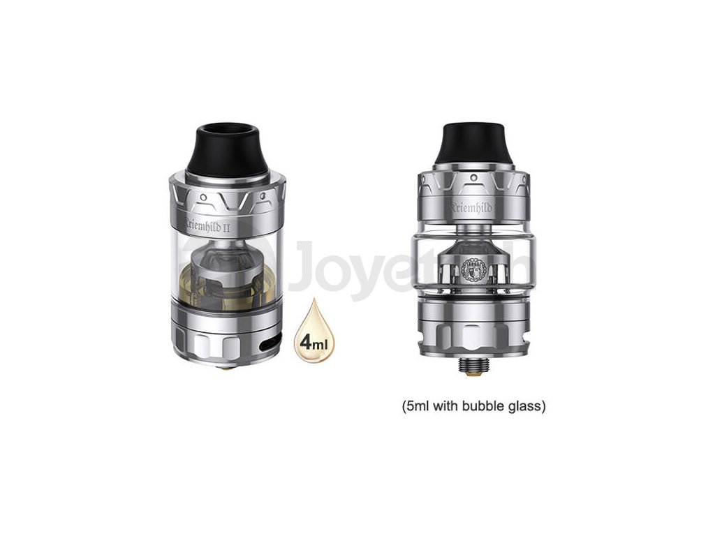 Kriemhild II Sub Ohm Tank od výrobce Vapefly je nízkoodporový clearomizér na tovární žhavící hlavy vhodný pro přímé potahování do plic. Láká na stylové designové zpracování, velký objem tanku a zbrusu nové žhavící hlavy s mesh pletivem pro zisk velkého množství páry a prvotřídní chuť. Délka atomizéru činí jen 51,2 mm. Průměr se zastavil na 25 mm. Kompatibilitu s většinou modů na trhu zajišťuje závit typu 510 ve spodní části. Vrchní část je opatřena náustkem s uchycením typu 810, v balení najdete také adaptér pro použití náustku s uchycením 510. Objem tanku činí 4 ml, přičemž tuto kapacitu pohodlně navýšíte až na 5 ml osazením vybouleného pyrexového skla z balení. Samozřejmostí je potom intuitivní bajonetové vrchní plnění pro co nejsnazší obsluhu.