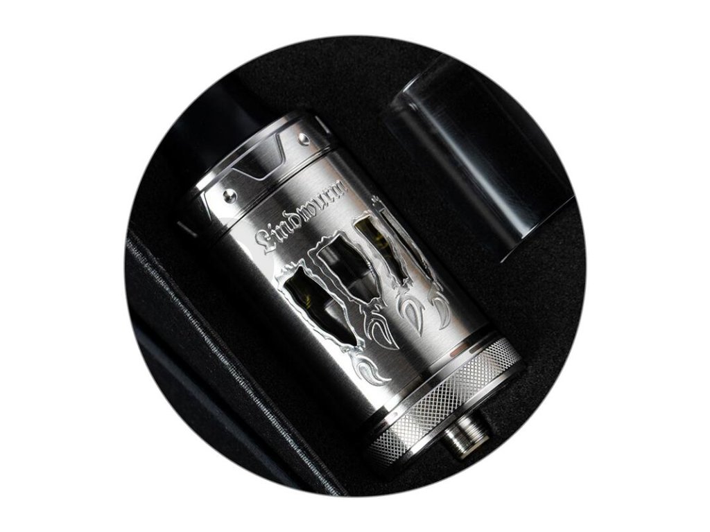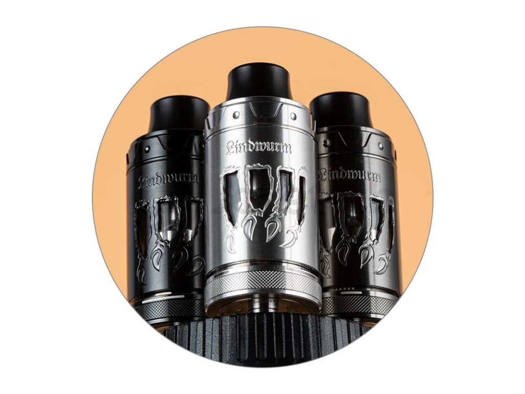Clearomizér nabídne průměr 25,5 mm a délku jen 59,1 mm. Ve vrchní části je osazen náustkem s uchycením typu 810 a jeho spodní část zdobí závit typu 510 pro plnou kompatibilitu s většinou modů na dnešním trhu. Clearomizér Lindwurm RTA nabídne také obrovský objem tanku, ten pojme až 5 ml e-liquidu. Je navíc vybaven snadným a praktickým systémem doplňování, postačí pouze pootočit vrchním uzávěrem a můžete začít plnit. V jádru atomizéru se potom nachází základna pro jednu spirálku s precizně navrženou konstrukcí pro co nejjednodušší a nejrychlejší osazení. Celý atomizér nabuildujete už za několik málo minut. Spojení unikátního systému airflow a kvalitně zpracované konstrukce je zkrátka neodolatelné, s atomizérem se budete zaručeně vyjímat. K dostání je ve třech stylových a konvenčních barvách, z nichž si zaručeně vybere každý milovník DL potahu.
