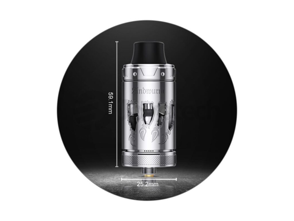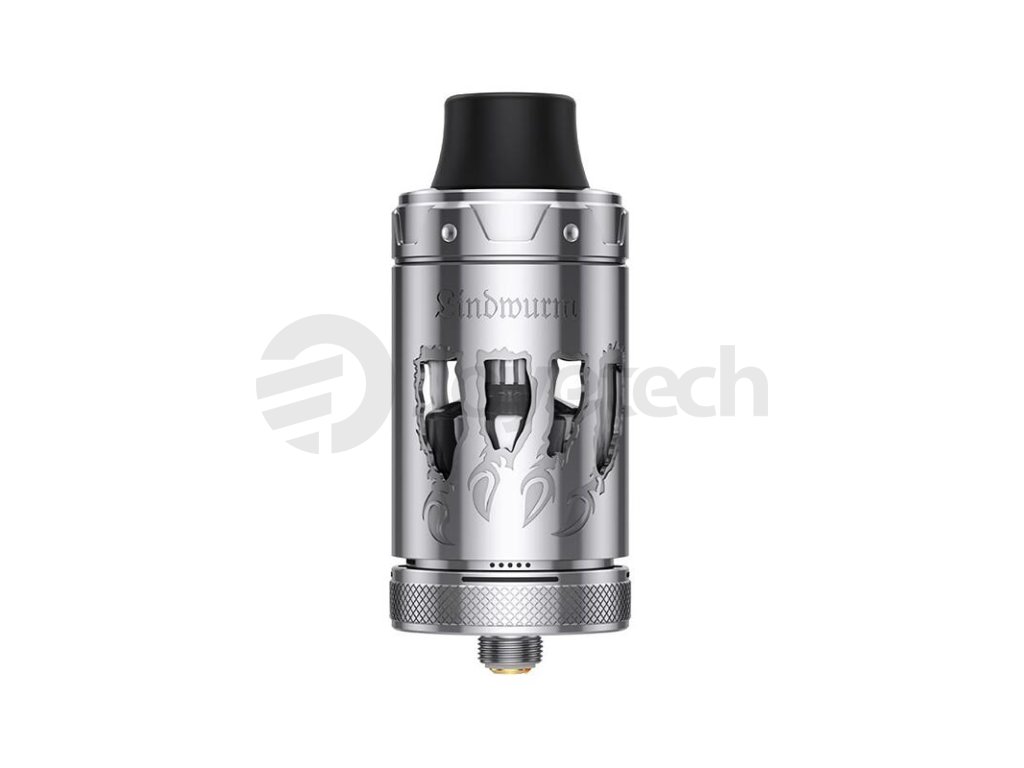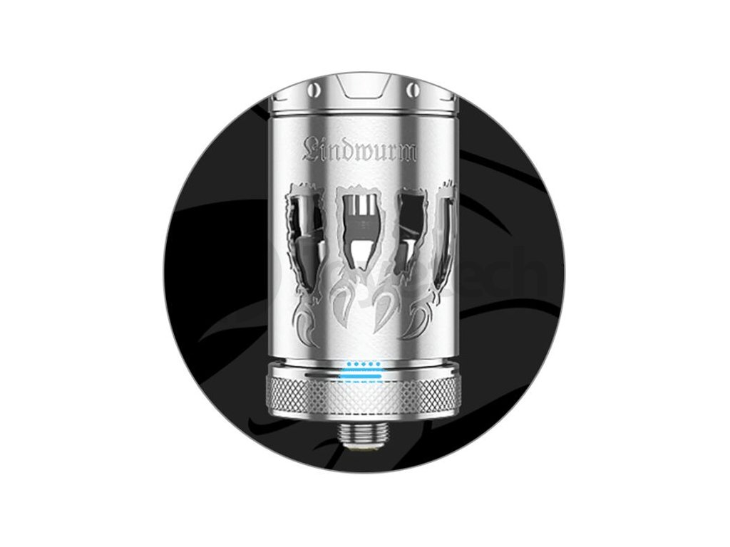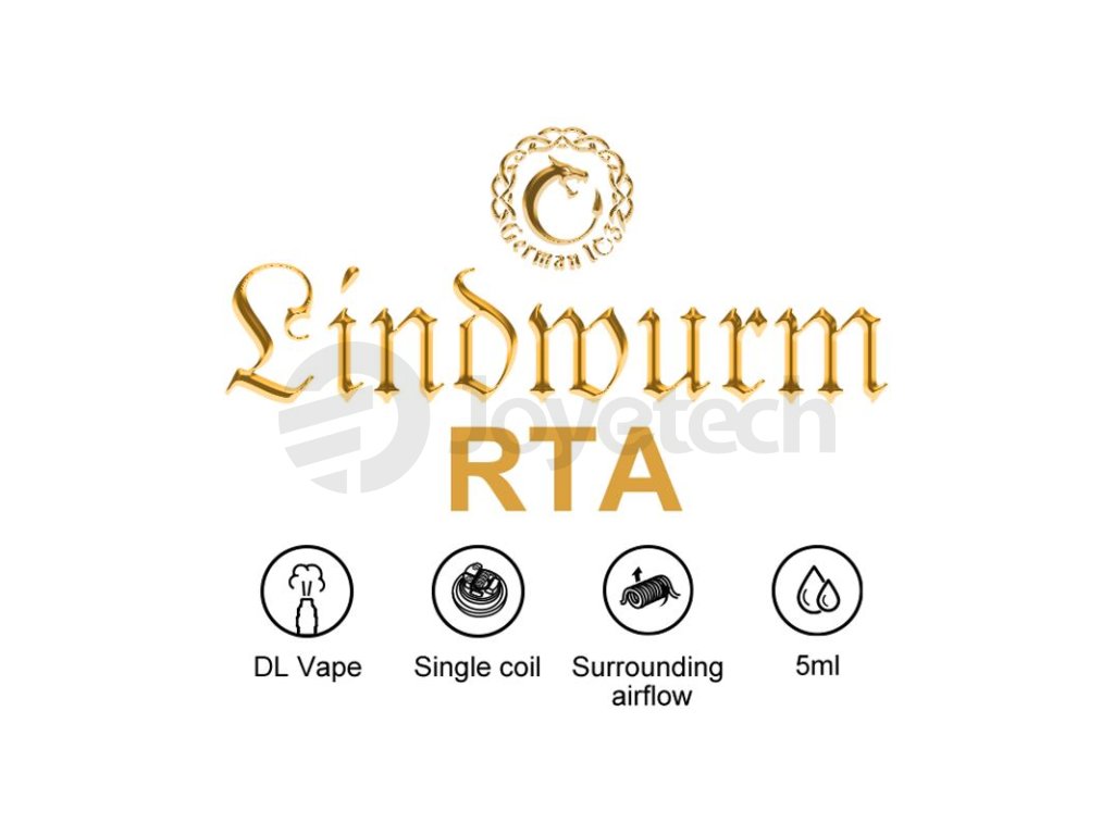 Clearomizér nabídne průměr 25,5 mm a délku jen 59,1 mm. Ve vrchní části je osazen náustkem s uchycením typu 810 a jeho spodní část zdobí závit typu 510 pro plnou kompatibilitu s většinou modů na dnešním trhu. Clearomizér Lindwurm RTA nabídne také obrovský objem tanku, ten pojme až 5 ml e-liquidu. Je navíc vybaven snadným a praktickým systémem doplňování, postačí pouze pootočit vrchním uzávěrem a můžete začít plnit. V jádru atomizéru se potom nachází základna pro jednu spirálku s precizně navrženou konstrukcí pro co nejjednodušší a nejrychlejší osazení. Celý atomizér nabuildujete už za několik málo minut. Spojení unikátního systému airflow a kvalitně zpracované konstrukce je zkrátka neodolatelné, s atomizérem se budete zaručeně vyjímat. K dostání je ve třech stylových a konvenčních barvách, z nichž si zaručeně vybere každý milovník DL potahu.