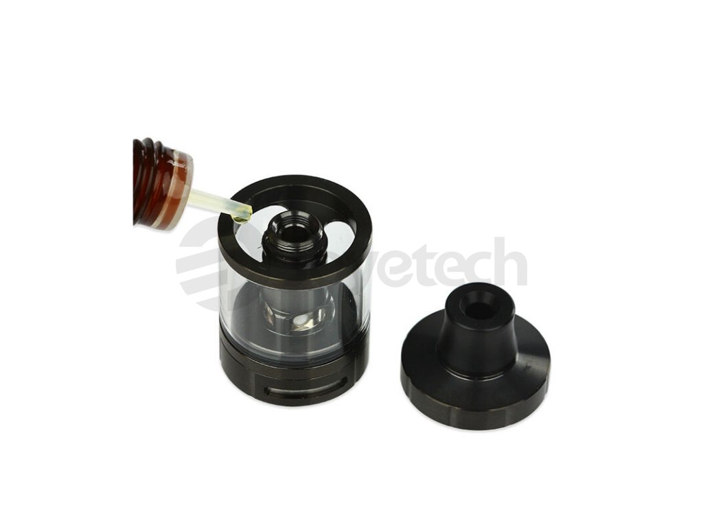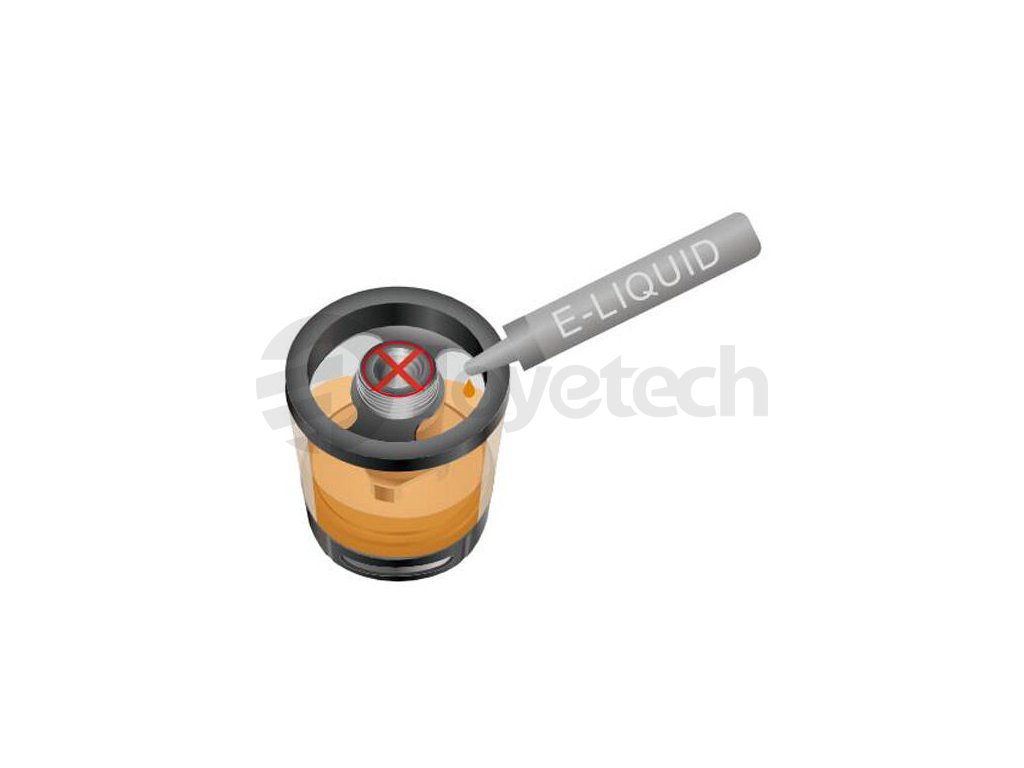 Jednoduchým pohybem odšroubujte vrchní uzávěr a začněte doplňovat e-liquid do bočních otvorů. Nikdy pro plnění nepoužívejte středový otvor, jedná se o komoru a e-liquid by vám protekl ven. Tento plnící systém je prověřený dlouhými roky a zkušenostmi celé vaperské komunity. Je rychlý a intuitivní, každý uživatel bude mít doplněno během pár vteřin.