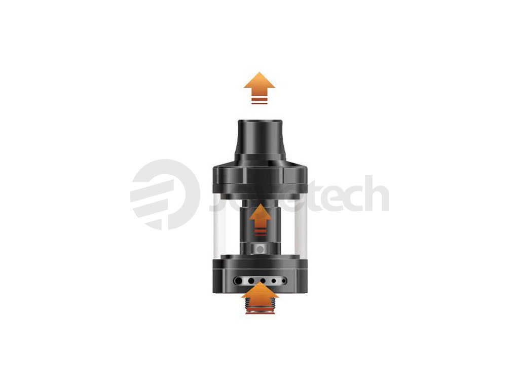 Pro optimální nastavení produkce páry a úpravu tuhosti potahu použijte spodní systém airflow. Ten nabídne celkem pět otvorů pro přísun vzduchu s různými průměry. Otáčením regulačního kroužku si sami zvolte požadované nastavení airflow. Z druhé strany se navíc nachází ještě jeden extra vzduchový otvor, který umožní plynulejší přísun vzduchu do tanku, čímž značně ovlivníte chuť. Nastavení je skutečně bohaté a každý si může přizpůsobit potah přesně svým představám.