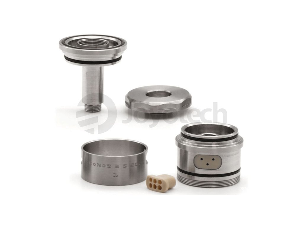 Ve vrchní části atomizéru Kronos 2 S RTA (2021 Edition) se nachází polykarbonátový náustek pro zprostředkování mimořádného chuťového zážitku. Polykarbonát nezkresluje chuť e-liquidu a dodá do vašich úst vždy autentickou chuť páry. Výrobce navíc dodává v základním setu hned dva náustky s rozdílným tvarem a vnitřním průměrem. Náustek můžete také nahradit svým vlastním libovolným náustkem, disponuje totiž uchycením typu 510.