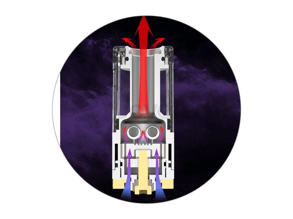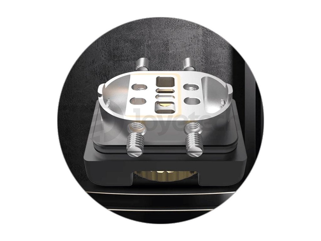 V jeho spodní části se nachází tradiční závit typu 510 pro snadné vyžhavení spirálky. V balení najdete také praktický airflow kroužek, kterým si můžete závit pohodlně skrýt a zároveň regulovat přívod vzduchu. Na těle tanku Yachtvape Eclipse Dual Boro se nachází hned dva plnící otvory pro ještě jednodušší a variabilnější možnosti doplňování.