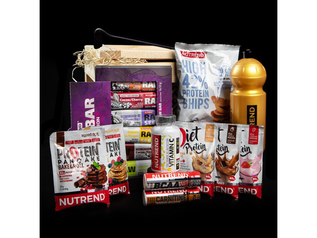 Dárková bedna obsahující vše, co fitkař potřebuje pro správnou výživu po celý den. Od snídaně, přípravy na trénink a potréninkové výživy, až po zdravé mlsání k večerní chvilce u telky. Všechny produkty jsou plné proteinů pro růst svalů. Regeneraci podpoří aminokyseliny a vitamíny, které ocení každý sportovec. Nechybí ani tyčinky do kapsy pro uspěchaný den, či jako výživná svačinka. Součástí bedny je stylová láhev na pití pro hydrataci, která je při cvičení nezbytná. Otestujte, jak se obdarovanému úročí hodiny v posilovně a nechejte jej otevřít tuto bednu pomocí páčidla, jak jinak, než silou. |