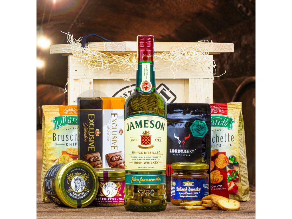 Bedna pro muže Jameson která v zrála 4 roky roky v dubových sudech, je skvělou volbou po pořádného chlapa, který ocení dobrou whisky. Nejenom proto, že je jedničkou na trhu s irskou whisky, ale i pro svou lehkost a chuť. K ní si oslavenec vypáčí dobroty, které přijdou k chuti za každé příležitosti. Ať už dostane chuť na sladké či slané, dárková bedna bude mít co nabídnout. Milovníci masa mohou whisky doplnit pikantními jerky, kančím nebo pytláckým rilletttes. Jiné chuťové pohárky zase potěší čokoláda Taitau Exclusive Selection, vyrobená z nejkvalitnějších ghanských kakaových bobů. Dřevěnou bednu si otevře přiloženým páčidlem, což dokáže skvěle zpestřit rodinnou oslavu, večírek či jinou příležitost a zasloužený dárek tak udělá větší radost.