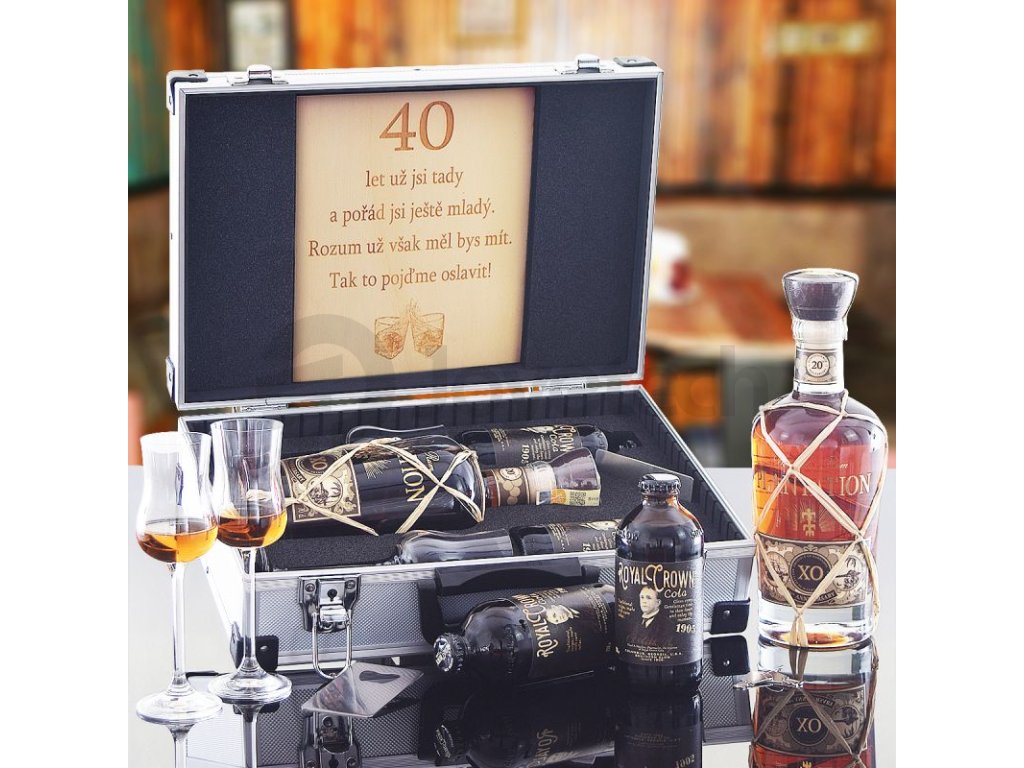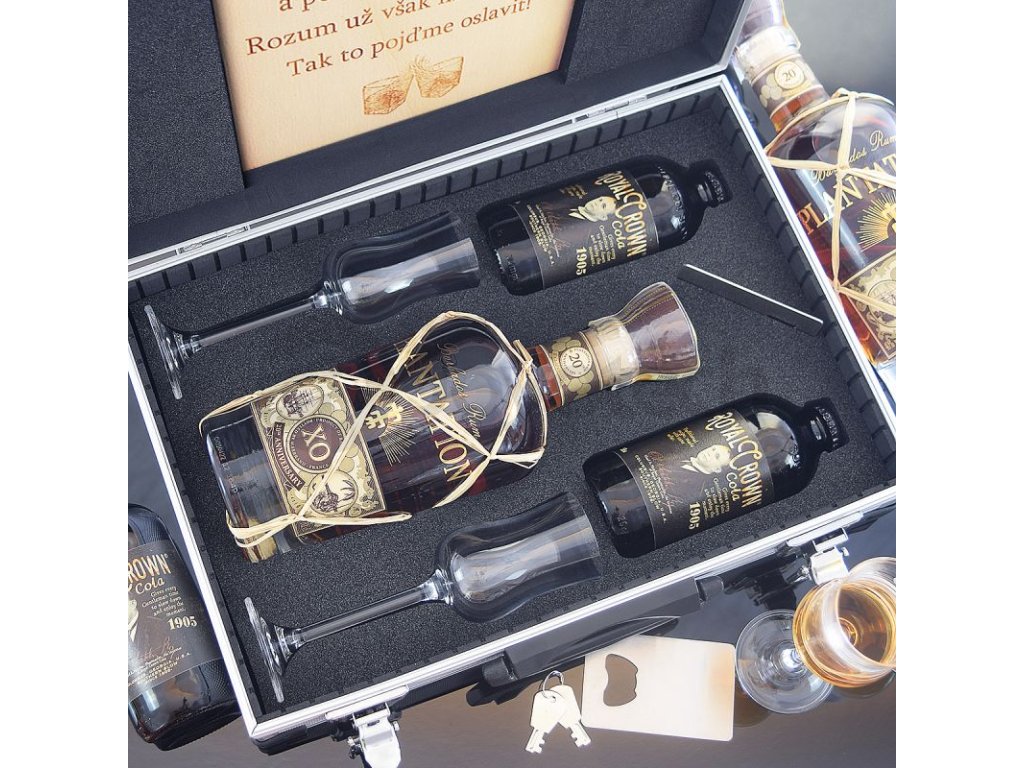 1x Hliníkový kufr. Složení Kufr je opatřen plastovými rohy a pevným madlem. 1x Nerezový otvírák na láhve 2x Sklenice na rum Plantation 1x Plantation XO 20th Anniversary 0,7 l Složení: Obsah alkoholu 40%. Země původu: Barbados 1x Royal Crown Cola. Složení: 250 ml 1x Royal Crown Slim Cola. Složení: 250 ml |