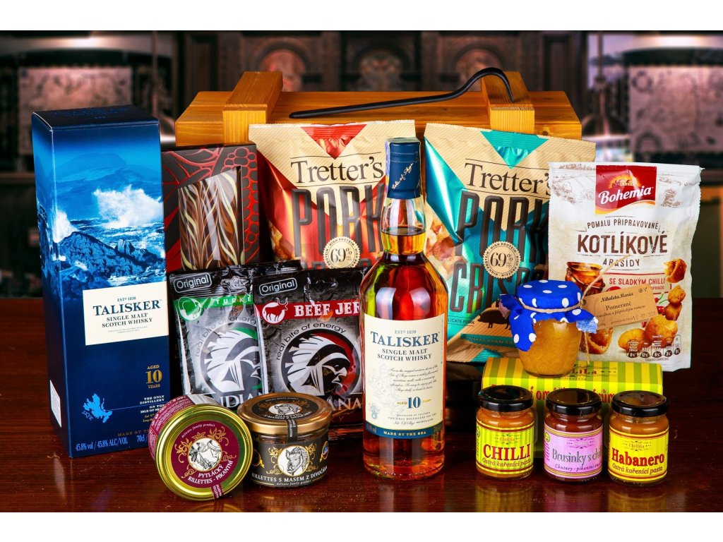 Exkluzivní bedna Taliskér Hledáte dárek, který zaujme nejenom svým vyladěným vzhledem, ale taky velmi bohatým obsahem? Exkluzivní bedna s páčidlem je určená pro ty, kteří chtějí udělat dárkem opravdu dojem. Bedně dominuje skotská whisky Talisker, která pochází z ostrova Skye. A přesně tak i chutná a voní – lehce po kouři a mořské vodě, které doplňují sladkostí karamelové tóny. Bedna je až po okraj zaplněná dalšími dobrotami jako třeba domací marmeládou, masovými Rillettes nebo vepřovými škvarky. Obdarujte svého přítele, tatínka nebo šéfa zážitkem při páčení exkluzivní bedny a poté i její obsahem. |
