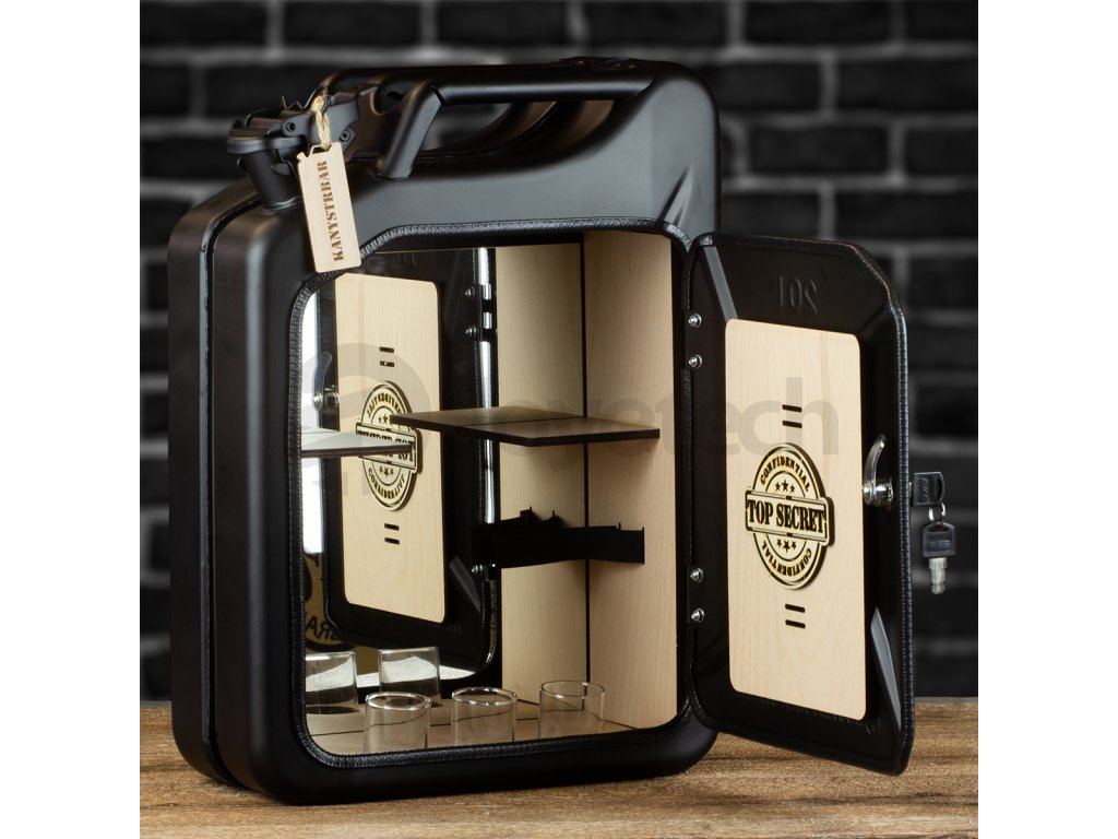 Bar Kanystr není jen atrapa, ale designový doplněk pro pořádného chlapa vyrobený z opravdového kanystru. Díky různým originálním provedením v něm naleznete ten nejlepší dárek, ať už slaví dědeček, tatínek nebo třeba přítel. Díky propracovaným poličkám a přihrádkám se v něm schová vše důležité včetně lahve něčeho ostřejšího. Stačí si jen vybrat, který bude ten pravý.