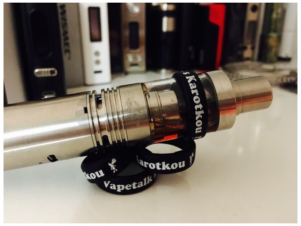 Dekorativní silikonový kroužek s logem Vapetalk s Karotkou. Silikonový kroužek je vhodný pro baterie, gripy a clearomizéry s průměrem nad 22mm. Slouží nejen jako dekorace, ale především u skleněných clearomizérů dokáže uchránit sklo v případě, že např. postavená e-cigareta spadne.