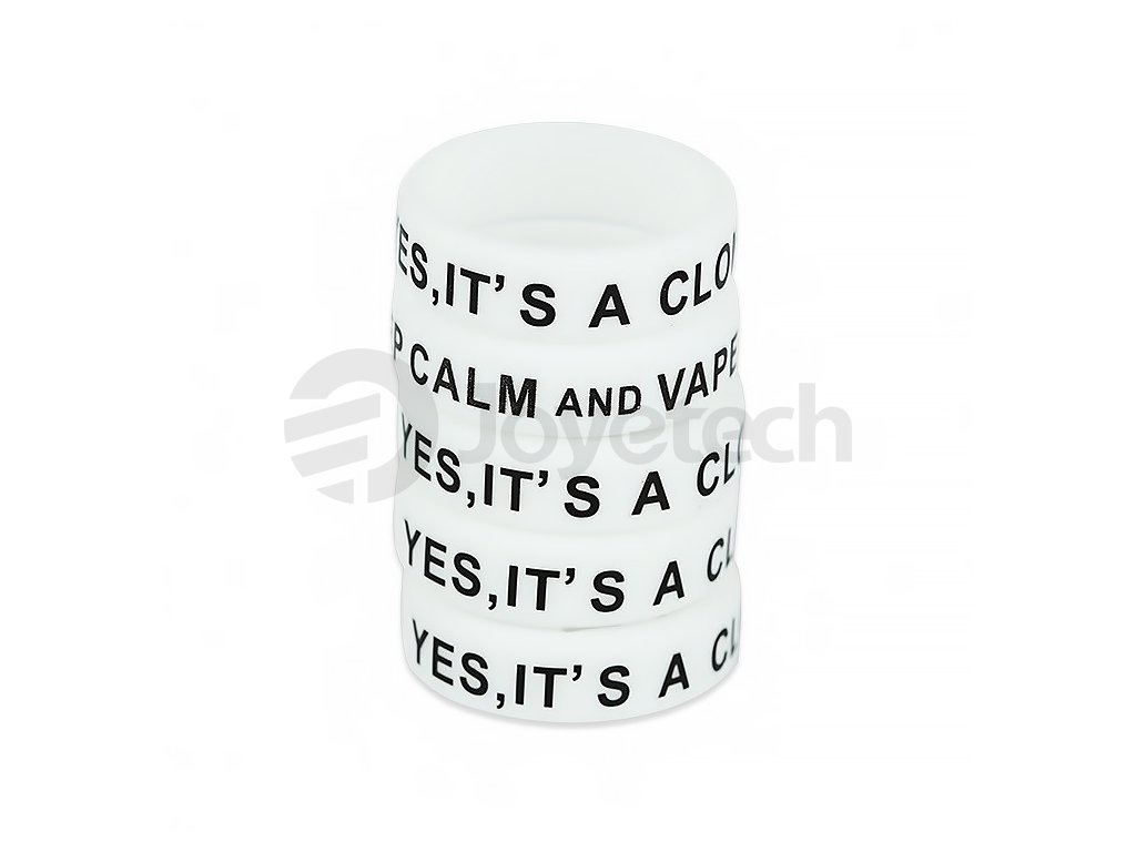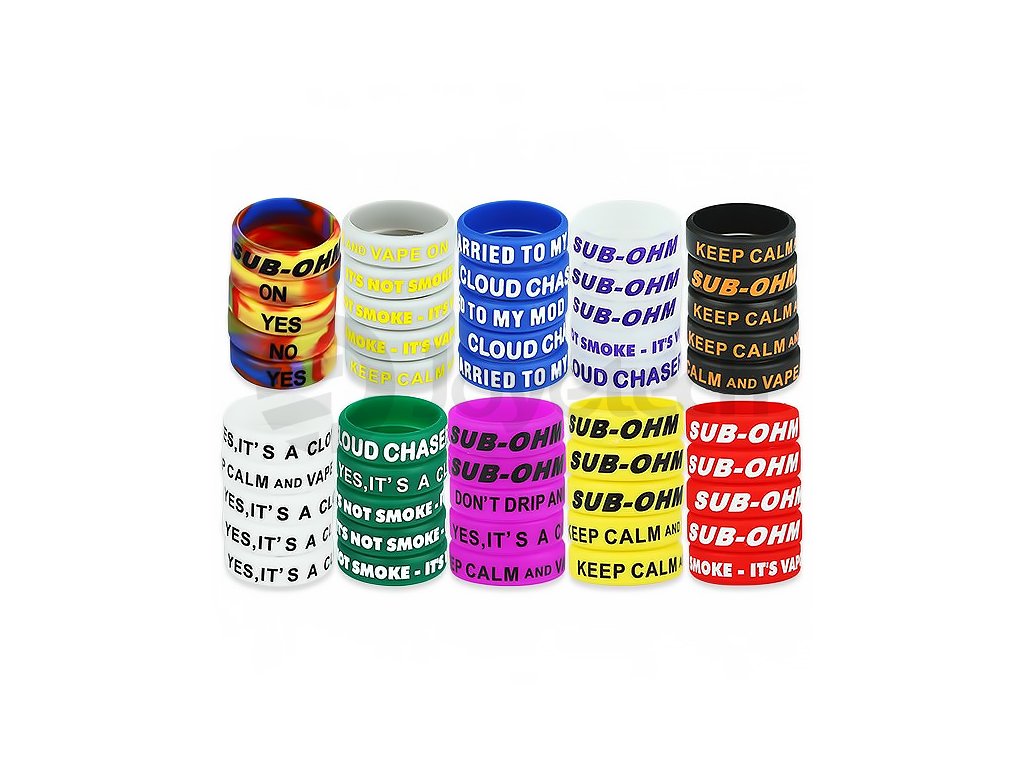 Designový silikonový kroužek je vhodný nejen jako designový doplněk Vaší elektronické cigarety, nebo gripu. Poslouží zároveň jako funkční ochrana Vašeho skleněného Clearomizeru, například při pádu na zem. Tento kroužek je určený pro baterie, případně Clearomizery s průměrem 23 mm. Potisk kroužků je opatřen náhodným textem, který se nemusí vždy shodovat s uvedenou fotografií.