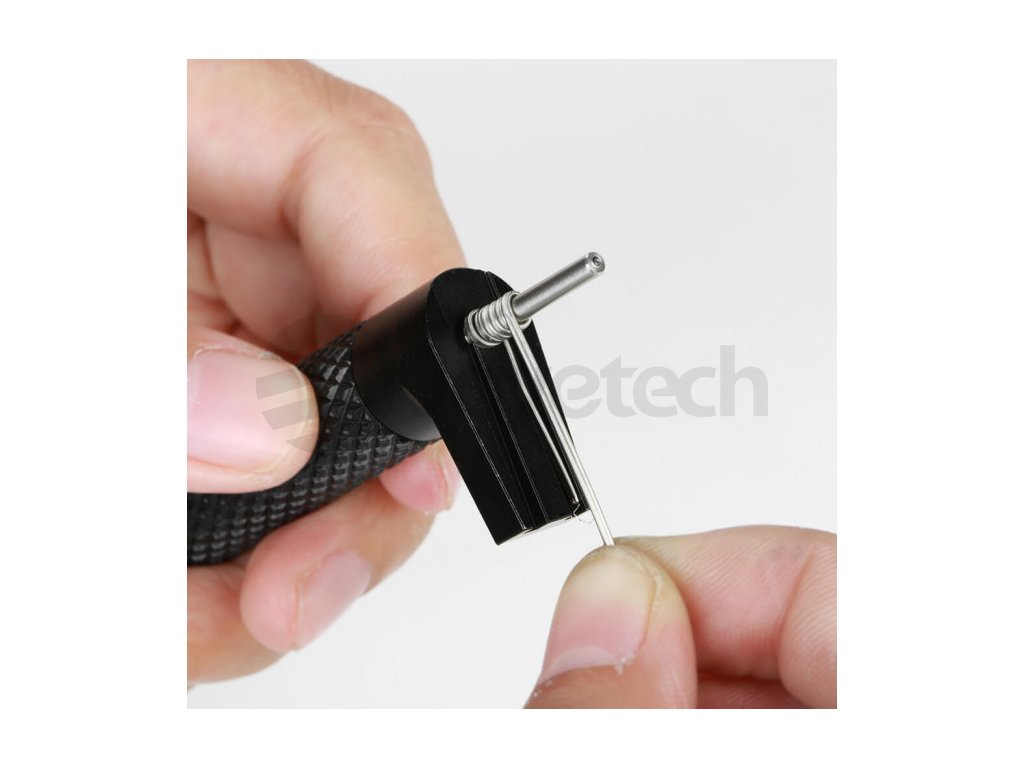 LVS 4v1 Coil Jig je praktický nástroj, díky kterému si můžete namotat vlastní spirálku do své RBA, RTA, nebo RDA žhavící hlavy, a to dokonce s různými průměry vnitřního oka. Vše je velmi jednoduché, a celá výroba spočívá v několika málo krocích. Vyberete si jeden ze čtyř obsažených nástrojů s vaším vybraným průměrem, nasadíte ho do válcovité základny, která zároveň slouží jako rukojeť, nasadíte speciální hlavu s výřezy pro odporový drát a jednoduchým otáčením vytvoříte vlastní spirálku.