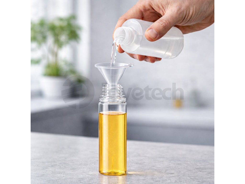 Trychtýř pomůže i v případech, kdy u některých bází chybí kapátko, problém přelití do menší lahvičky je tím tedy vyřešen. Trychtýř nabízíme v transparentním provedení. Je vyroben z polypropylenu (PP).