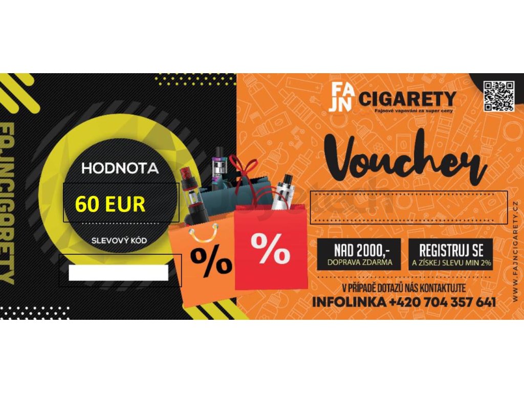 Nevíte-li si rady s výběrem vhodného dárku, pak je koupě dárkového voucheru právě tou pravou volbou. Získáte tak elektronický dárkový voucher v uvedené hodnotě. Voucher je možno uplatnit na www.fajncigarety.cz a je s ním možno uhradit jakékoli zboží na našem eshopu. Uplatnění probíhá v nákupním košíku v kroku č.1. Nákupní košík vložením kódu do pole vložte slevový kód a následným kliknutím na tlačítko přidat.