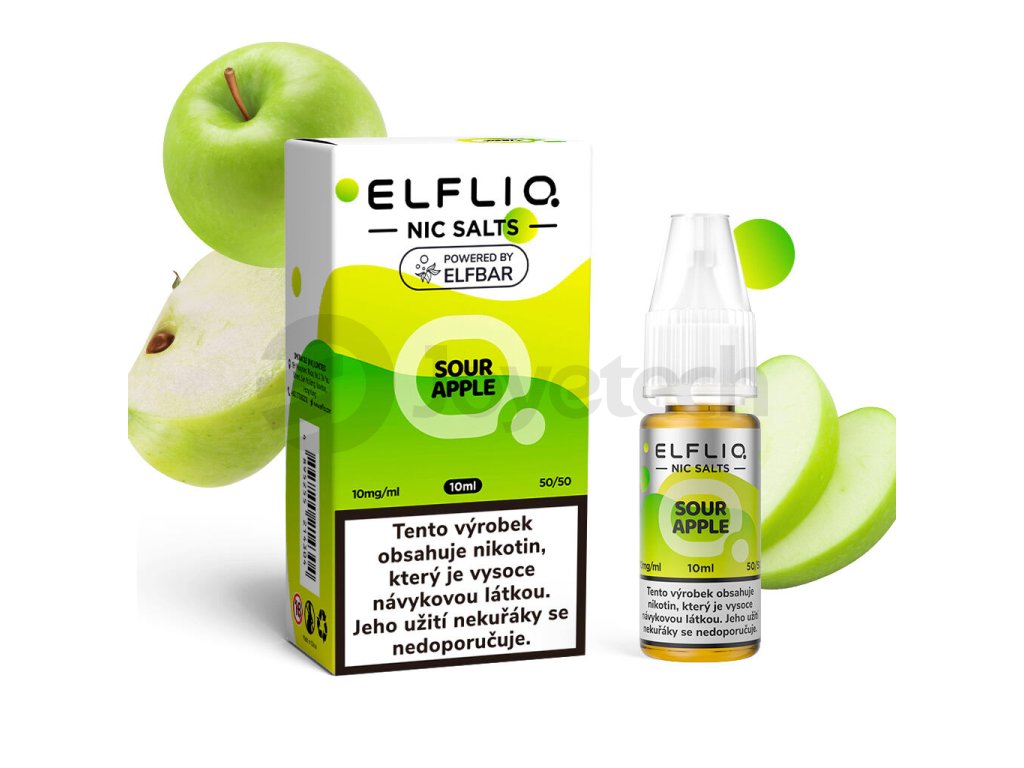 Elfliq Salt Sour Apple (Nakyslé jablko) 10ml intenzita nikotinu 10mg tabáková nálepka Kolek Q
