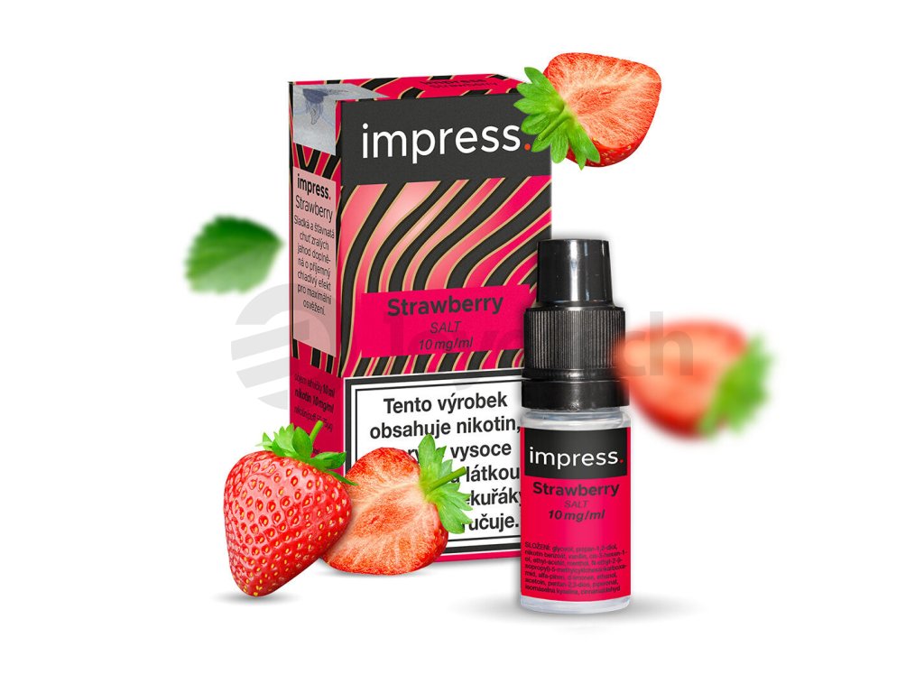 Náplně Impress Salt obsahují stále více oblíbenou nikotinovou sůl, která se rychleji vstřebává a nevyvolává dráždivý pocit v krku. Díky tomu je možné inhalovat vyšší dávku nikotinu v každém potahu, ovšem v mnohem delších intervalech. Tím se výrazně prodlouží životnost žhavících hlav, šetří se kapacita baterie a v neposlední řadě také spotřeba samotné náplně.