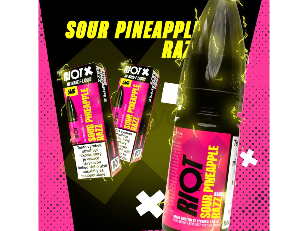 - 1x e-liquid RIOT X Salt Sour Pineapple Razz 10 ml