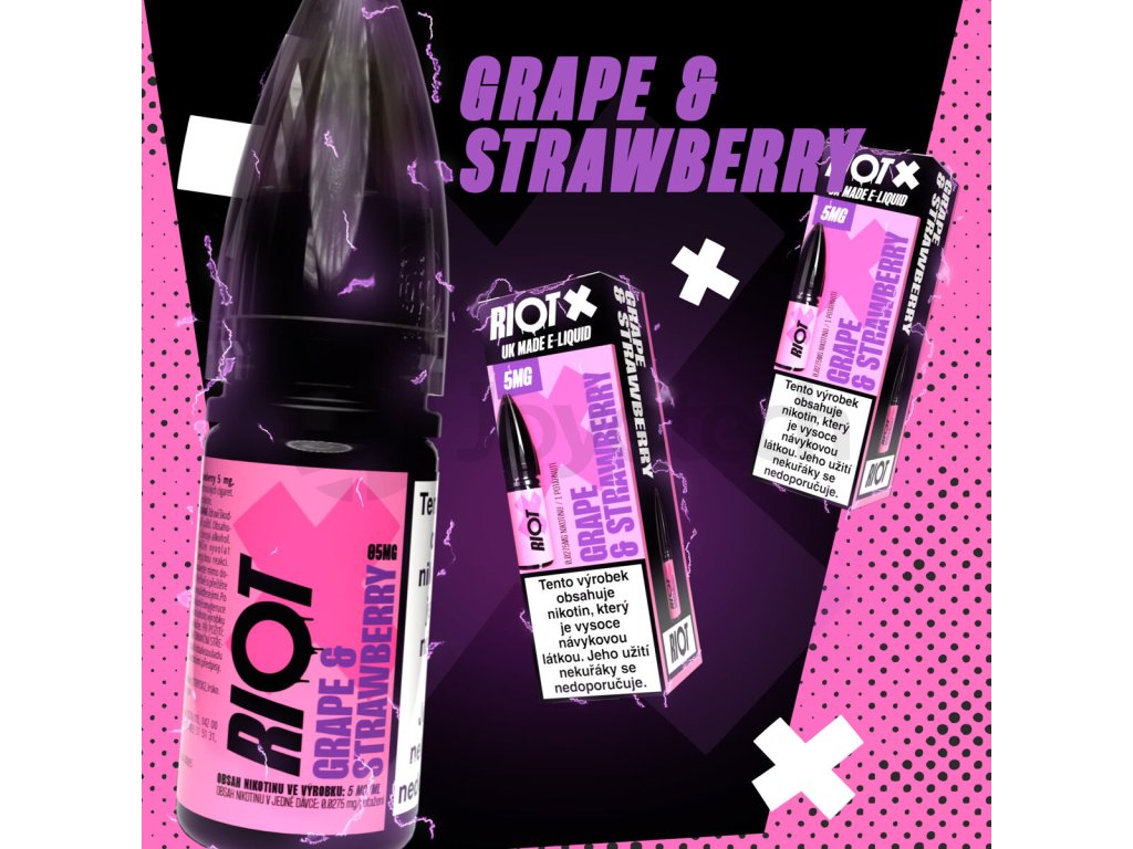 - 1x e-liquid RIOT X Salt Grape & Strawberry 10 ml