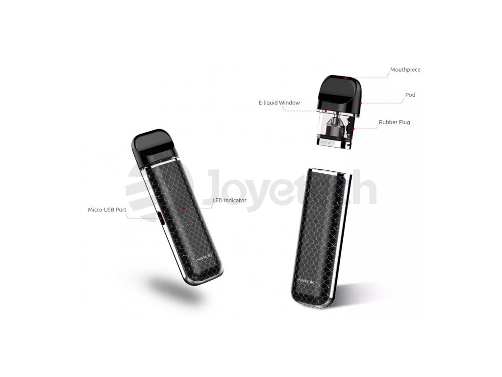 Smoktech představuje novou elektronickou cigaretu s POD systémem a krásným designovým zpracování ve stylu Cobry. Vyměnitelná cartridge (POD) s žhavicí hlavou pojme až 2ml liquidu. Jednoduchým zacvaknutím propojíte cartridge s tělem baterie, které ukrývá vestavěnou baterii o kapacitě 450mAh s automatickým spínačem a LED indikátorem stavu nabití. Nabíjení zajišťuje micro USB vstup. Novo disponuje osmivteřinovou kontrolou potahů, ochranou proti zkratu, přehřátí a vybití. Díky svým proporcím se stane nedílnou součástí Vašich kuřáckých potřeb. Více info v detailním popisu