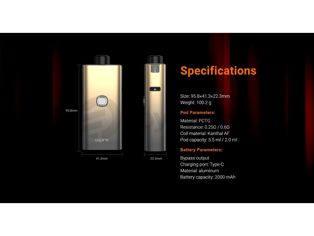 Aspire je jeden z velkých výrobců, který od roku 2013 posouvá dopředu zařízení, ale i způsob vapování. Aspire první představil takzvané BVC hlavy. Aspire se zaměřoval na tyl kouření pusa-plíce, ale jako první přišel s nízkoodporovým tankem. Aspire dále pokračuje na pevných základech. Aspire má pro začátečníky skvělé sady, pokročilí si užijí novou řadu nízkoodporových tanků