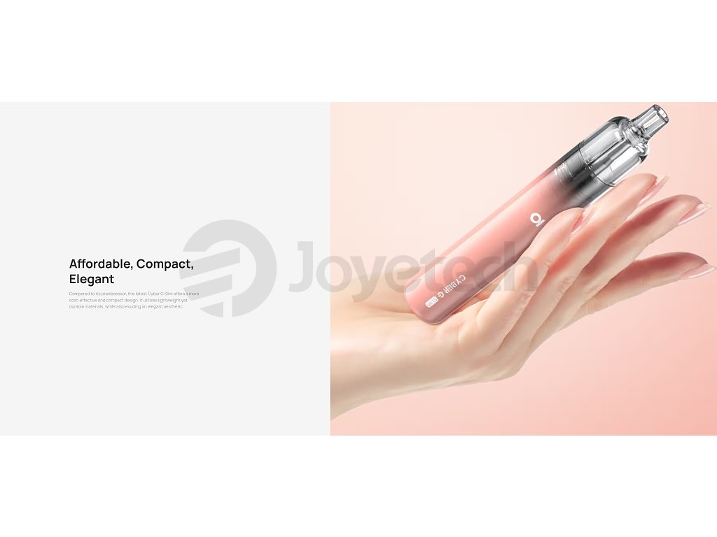 Designově se Aspire Cyber G Slim odlišuje od běžných elektronických cigaret díky svému elegantnímu a minimalistickému vzhledu s povrchem příjemným na dotyk. Absence displeje a složitých nastavení podtrhuje filozofii jednoduchosti - stačí nabít, naplnit a vapovat. 2ml Pod Cartridge se silikonovou krytkou pro snadné plnění je navržena pro optimální komfort při potahování pusa-plíce (MTL). Integrovaná žhavící hlava eliminuje nutnost složité výměny spirálek, při opotřebení jednoduše vyměníte celý pod za nový. Magnetický kontakt zajišťuje spolehlivé připojení a snadnou manipulaci. Aspire Cyber G Slim je vyrobena z kvalitních materiálů, které zaručují dlouhou životnost a odolnost proti každodennímu používání. Balení obsahuje vše potřebné pro okamžité zahájení vapování - elektronickou cigaretu, náhradní pod a USB-C kabel. Tato elektronická cigareta představuje perfektní vstupní bod do světa vapování nebo spolehlivého každodenního společníka pro ty, kteří preferují jednoduchost a spolehlivost před složitými funkcemi a nastaveními moderních vape zařízení.