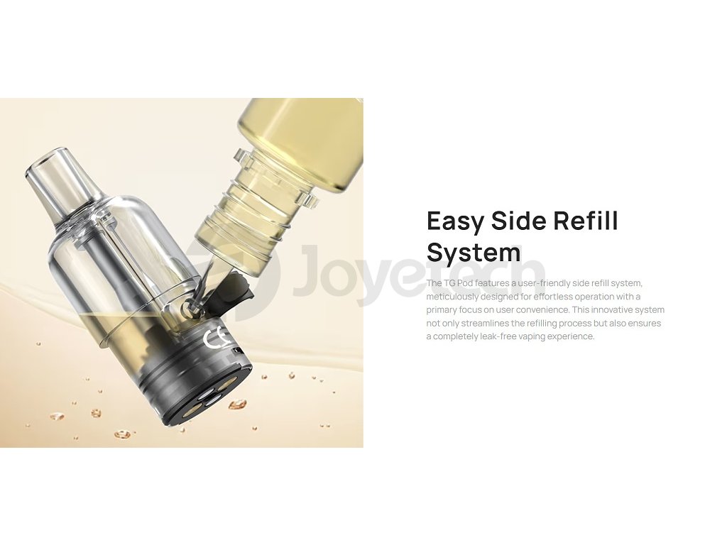 Pod Cartridge2ml plastová nádržka s integrovanou žhavící hlavou se připojuje magneticky pro snadnou výměnu. Plnění probíhá přes silikonovou krytku, která zajišťuje těsnost a zabraňuje vytékání e-liquidu. Pod je navržen pro optimální průtok vzduchu a chuťový zážitek při potahování pusa-plíce. |