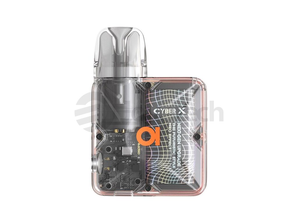 Najděte dokonalý balanc mezi esteticky vyladěným designem a bohatými funkcemi pod systémů. Aspire Cyber X Pod Kit je špičkový pod systém s futuristickým dílenským zpracováním a celou řadou funkcí pro usnadnění každodenního vapování. Kompaktní konstrukce e-cigarety perfektně padne do dlaně a příjemně se užívá. Rozměry se zastavily na krásných 74.2 x 51 x 20.5 mm. V boční části je e-cigareta zakrytá stylovým kovovým štítem s písmenem X a indikačními diodami, z druhé strany potom najdete na zařízení transparentní polykarbonátovou konstrukci, díky čemuž budete mít k dispozici náhled na vnitřní elektroniku e-cigarety. Tělo ukrývá integrovanou baterii s obrovskou kapacitou 1000 mAh pro dlouhou výdrž a stabilní výkon. Baterii budete moci dobíjet prostřednictvím portu USB-C, e-cigareta podporuje nabíjení proudem až 2A.