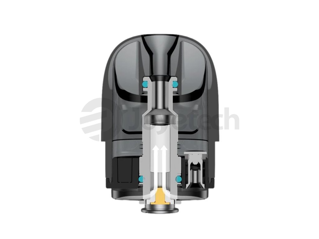 Ve vrchní části se nachází jednoduchá cartridge s ergonomickým náustkem a praktickým bočním plněním. Objem této cartridge činí 2 ml. Je kompatibilní se žhavícími tělísky Aspire AF Mesh, která se představují se dvěma odpory. První z nich nabídne odpor 0,6 ohm, druhé potom odpor 1,0 ohm. Obě tělíska lze využít jak se standardními náplněmi s nikotinem a bez nikotinu, tak také s e-liquidy s nikotinovou solí.