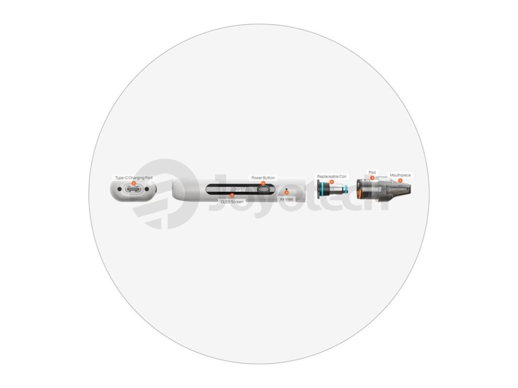 V boční části se potom nově nachází velký a jasný OLED displej pro snadné nastavení výstupního výkonu, na kterém najdete také základní informace o zařízení během používání. Displej zobrazuje údaj o zvoleném výkonu, odporu připojeného tělíska, stavu baterie a o počtu potahů. Pomocí regulačního tlačítka u displeje si můžete výkon regulovat v rozpětí 5 - 20 W. Ve vrchní části se potom nachází cartridge Minican 3 Pod s objemem 3 ml, která je kompatibilní se stejnojmennými tělísky. V balení na vás čeká tělísko s odporem 0,8ohm, v jehož jádru se ukrývá mesh pletivo pro perfektní podání chuti a optimální kouřivost. Aspire Minican 3 Pro Pod Kit je navíc zpětně kompatibilní také s původními cartridgemi Minican s integrovanými tělísky, které je možné pořídit k zařízení samostatně. Vyladěný pod systém Aspire Minican 3 Pro Pod Kit ocení naprosto všichni milovníci chutného MTL vapingu.