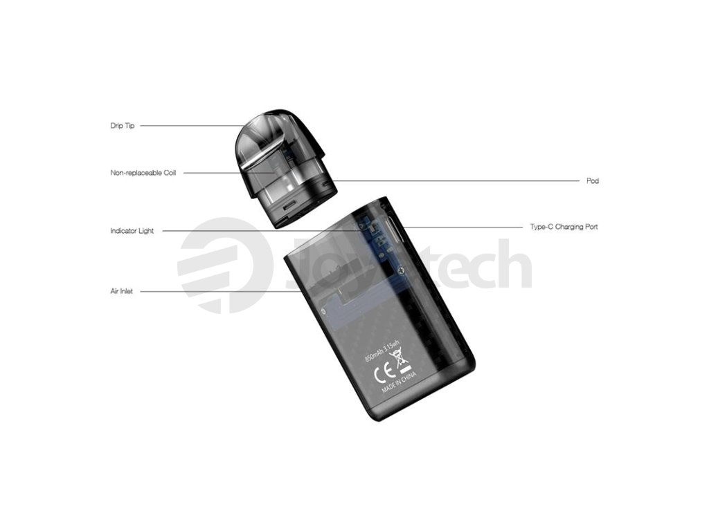 Uvnitř kompaktního těla se nachází integrovaná baterie s obrovskou kapacitou 850 mAh pro dlouhé hodiny pohodového vapingu. Nespornou výhodou je přítomnost USB-C portu pro rychlé a pohodlné dobíjení baterie. Mimo integrovanou baterii se v těle nachází také čip ASP od výrobce Aspire, který se postará o hladký chod zařízení a o bezpečné užívání díky celé řadě bezpečnostních prvků a ochran. Ve vrchní části potom najdete cartridge s objemem 2 ml a ergonomicky tvarovaným náustkem. Uvnitř této cartridge se nachází integrované tělísko s mesh pletivem a odporem 0,8 ohm pro optimální produkci páry a zisk vynikající chuti. Jedná se o skvělé MTL zařízení vhodné pro užívání standardních náplní, ale také pro e-liquidy s nikotinovou solí. Díky spojení kompaktní konstrukce a velké kapacity baterie se rychle stane vaším každodenním pomocníkem při vapování.