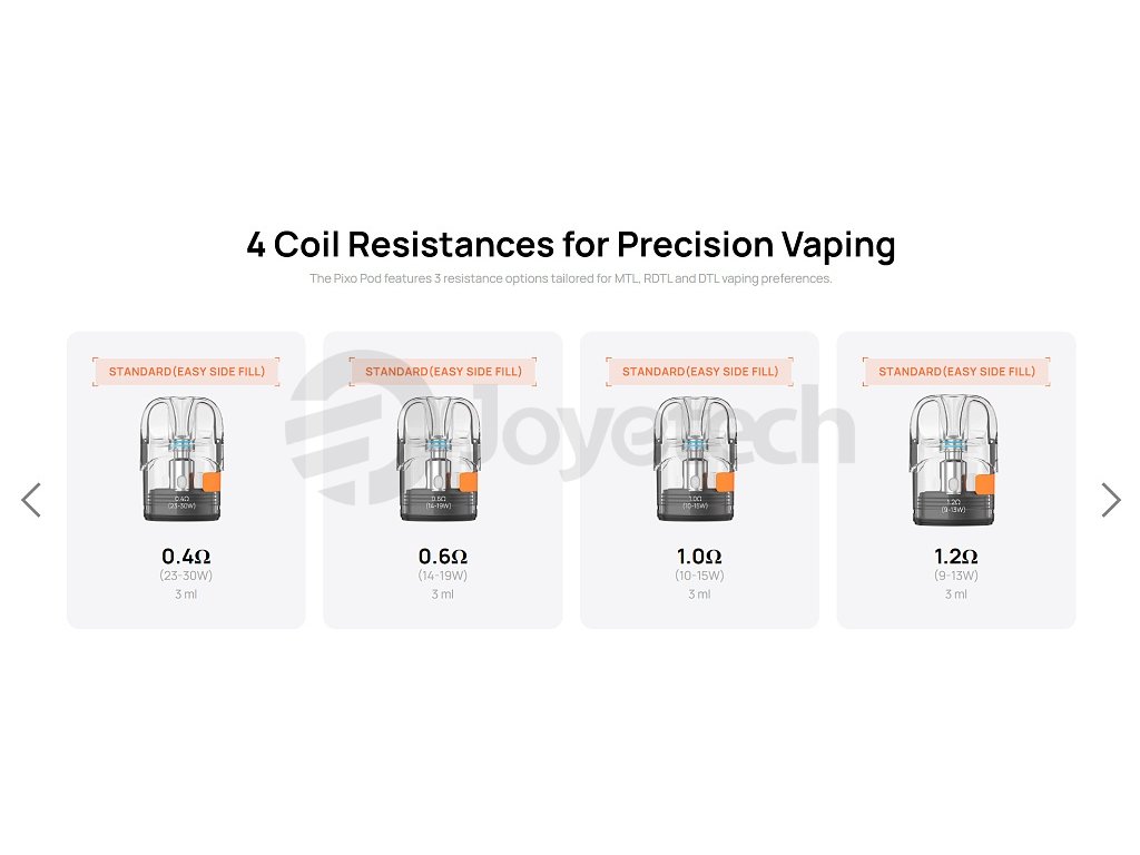 Pod CartridgePod Cartridge s objemem 2 ml nabízí dostatečnou kapacitu pro delší vapování bez nutnosti častého doplňování. V balení naleznete dvě kompletně vybavené cartridge s integrovanými žhavícími hlavami, které jsou připravené k okamžitému použití po naplnění e-liquidem. |