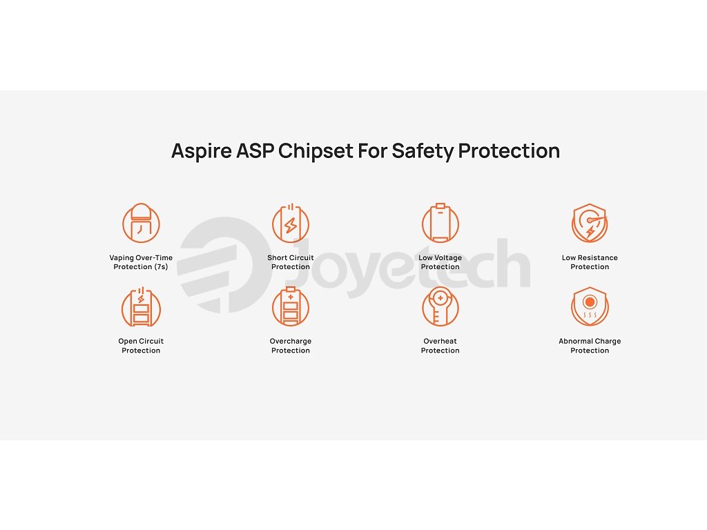 VýkonMaximální výkon 30W s rozsahem 5-30W umožňuje přizpůsobení podle vašich preferencí a použité žhavící hlavy. Aspire čipset zajišťuje spolehlivý a bezpečný provoz s možností automatického nebo manuálního nastavení výkonu pro optimální vapovací zážitek. |