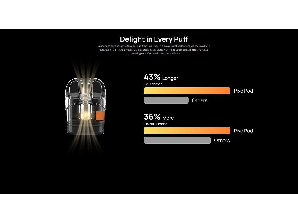 - 1x Pod Cartridge Aspire Pixo Pod (1.0Ω, 2 ml)