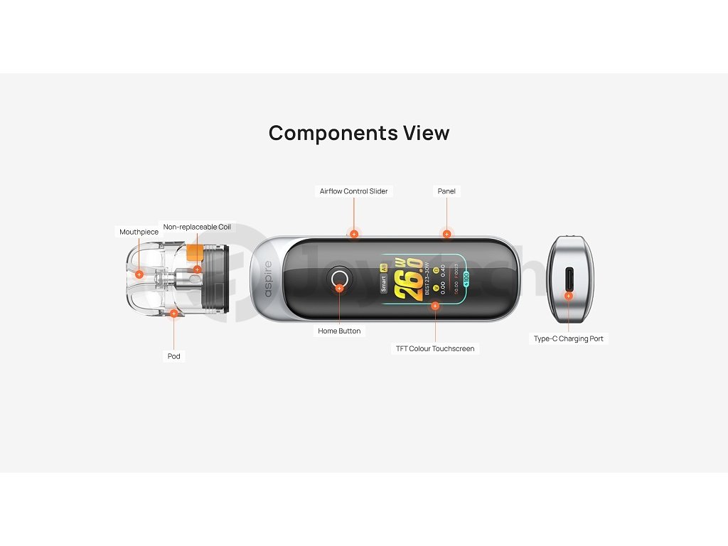 VýkonMaximální výkon 30W s rozsahem 5-30W umožňuje přizpůsobení podle vašich preferencí a použité žhavící hlavy. Aspire čipset zajišťuje spolehlivý a bezpečný provoz s možností automatického nebo manuálního nastavení výkonu pro optimální vapovací zážitek. |
