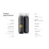 Parametry a specifikaceRozměry: 30.4 x 111.4 x 16.6 mm Kapacita baterie: 1100 mAh Režimy: Smart / Watt Metody spínání potahu: automatické/manuální Výstupní výkon: 5 - 30 W Způsob nabíjení: USB-C port (5V / 2A) Regulace výkonu: ano Objem Pod Cartridge: 2 ml Styl potahování: MTL / RDL Odpor žhavících hlav v balení: 0.4Ω / 1.0Ω Regulace přívodu vzduchu (Airflow): ano Hmotnost: 74 g Barva: Gunmetal (Šedá) Materiál: zinková slitina/plast |