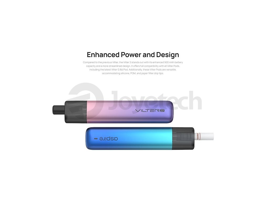 Aspire Vilter 2 vyniká především díky své mimořádně intuitivní obsluze založené na pokročilém systému automatického žhavení, který je aktivovaný jednoduše potahem z náustku. Není zde vůbec třeba mačkat žádná tlačítka ani zdlouhavě nastavovat složité parametry – jednoduše si přiložíte náustek ke rtům, lehce potáhnete a okamžitě se začne vytvářet hustá, chutná a aromatická pára plná intenzivní chuti. V bohatém balení naleznete kvalitní plastový pod s praktickým objemem 2ml, který je vybaven integrovanou moderní mesh žhavící hlavou s odporem 0,8Ω pro optimální výkon. Tato pokročilá mesh spirálka zajišťuje bleskově rychlé a dokonale rovnoměrné zahřívání e-liquidu, díky čemuž si vychutnáte maximálně intenzivní a věrnou chuť s každým jednotlivým nádechem bez kompromisů. Pod nabízí ideálně utažený potah ve stylu MTL (mouth-to-lung), který ocení zejména ti uživatelé, kteří přecházejí z klasických tabákových cigaret a hledají podobný pocit. Zajímavým a praktickým prvkem je možnost volby mezi dvěma různými typy náustků – klasickým odolným POM náustkem nebo speciálním filtrovým náustkem, jenž svým charakteristickým designem a pocitem velmi připomíná tradiční tabákové cigarety. Aspire Vilter 2 je navíc plně zpětně kompatibilní s původními Aspire Vilter pody s odporem 1Ω, což vám poskytuje ještě větší flexibilitu a možnosti při výběru podů podle vašich preferencí.