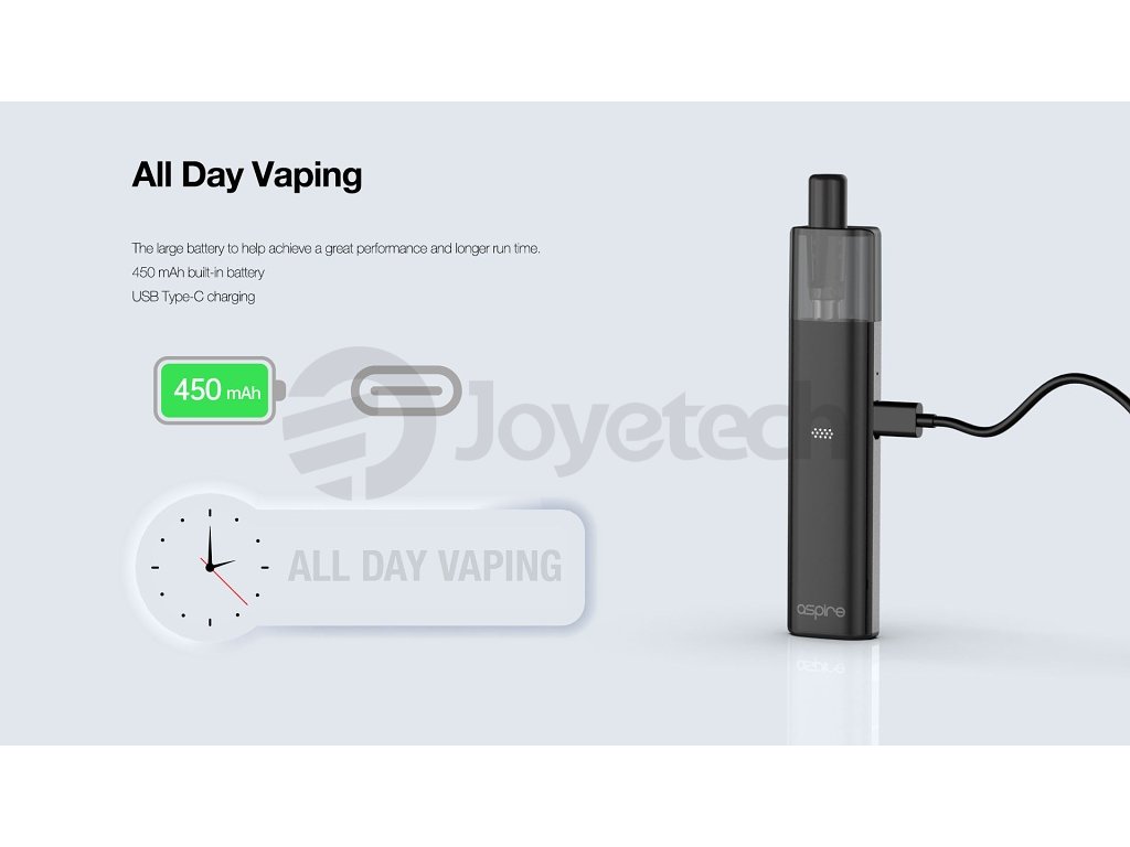 Aspire je jeden z velkých výrobců, který od roku 2013 posouvá dopředu zařízení, ale i způsob vapování. Aspire první představil takzvané BVC hlavy. Aspire se zaměřoval na tyl kouření pusa-plíce, ale jako první přišel s nízkoodporovým tankem. Aspire dále pokračuje na pevných základech. Aspire má pro začátečníky skvělé sady, pokročilí si užijí novou řadu nízkoodporových tanků